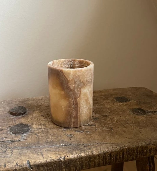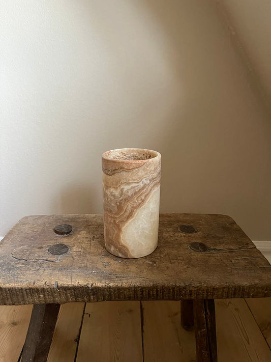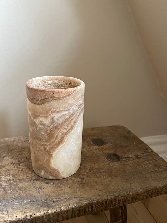Alabast Cylinder - 15 cm, Marmoreret Brun
