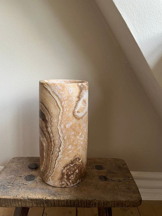 Alabast Cylinder - 25 cm, Marmoreret Brun