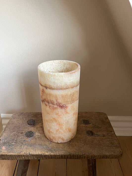 Alabast Cylinder - 20 cm, Marmoreret Brun