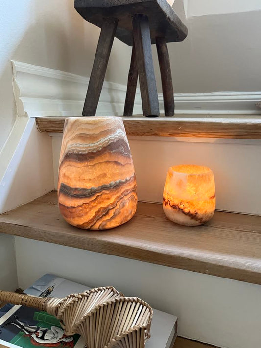 Hos Studio Fast x Min Gaia tilbyder vi et helt særligt udvalg af alabast lysestager, som vi selv henter direkte fra Egypten. Hver enkelt stage er håndlavet og unik, hvilket gør dem til et eksklusivt og smukt element i din indretning. Vi er stolte af at kunne præsentere et større udvalg af alabast stager, som du ikke finder andre steder.