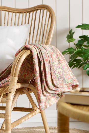 Tæppe - Quilt, Sart Gul Blomsterranker