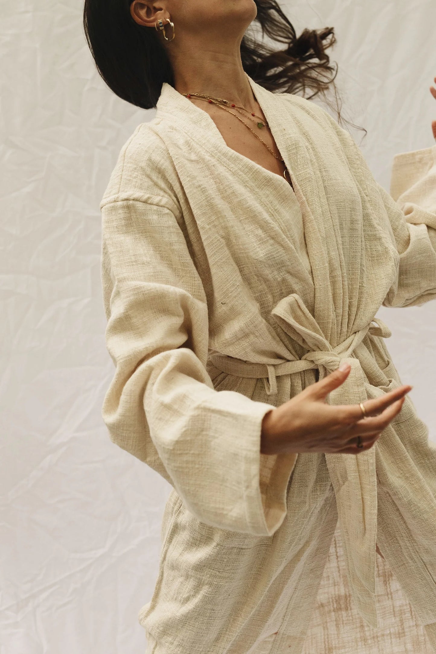 Fremstillet af luksuriøs hurtigttørrende økologisk bomulds- og hørblanding.