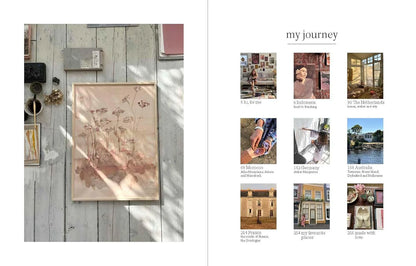 I An Artist's Journey tager kunstneren Tiny de Vries dig rundt i verden på jagt efter inspiration. Hun starter tæt på hjemmet i sit Utrecht-studie i Holland, hvor hun viser dig, hvordan du bruger fundne skatte til at personliggøre dit interiør. Bogen er en visuel rejse gennem hendes verden, med smukke fotos, kunstværker og personlige historier. Tiny fortæller om, hvordan man henter inspiration fra sine nærmeste omgivelser, såsom naturen, håndlavede stoffer og bøger. Hun viser også, hvordan rejser giver inspiration fra 'bitte små ingenting' fra hele verden. Denne smukt udførte lookbog er en ode til undren og forbindelsen. Det opfordrer dig til at se dig omkring med et fordomsfrit, nysgerrigt og legende øje, omfavne din egen kreativitet og give slip på trangen til perfektion. "Jeg elsker små-skala producerede, arvede, vintage og hjemmelavede genstande. Unikke genstande lavet af små producenter og kunsthåndværkere er rige på historier, med alle de smukke subtile nuancer. Sammen gør de et rum unikt." - Tiny de Vries i Art & Home Magazine