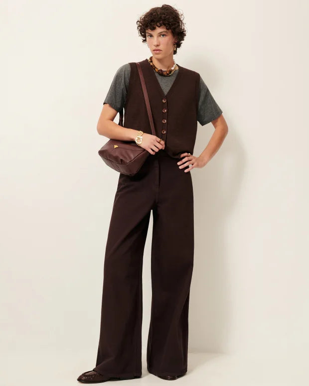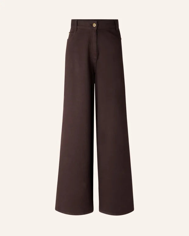 Højtaljede jeans med vide ben i blød, beklædningsgennemfarvet bomuldstwill, vævet i Spanien.