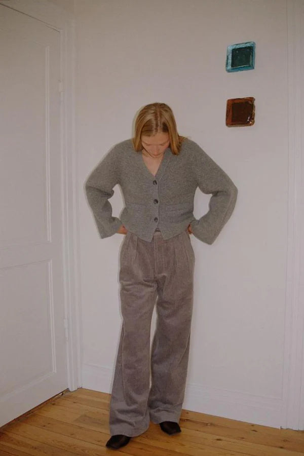 Herre-inspireret bukser med fastlinning, at læg, bæltestropper og lommer i en lækker og blød fløjl. Lia pants styles til hverdag med Greta cardigan eller Naomi skjorte.