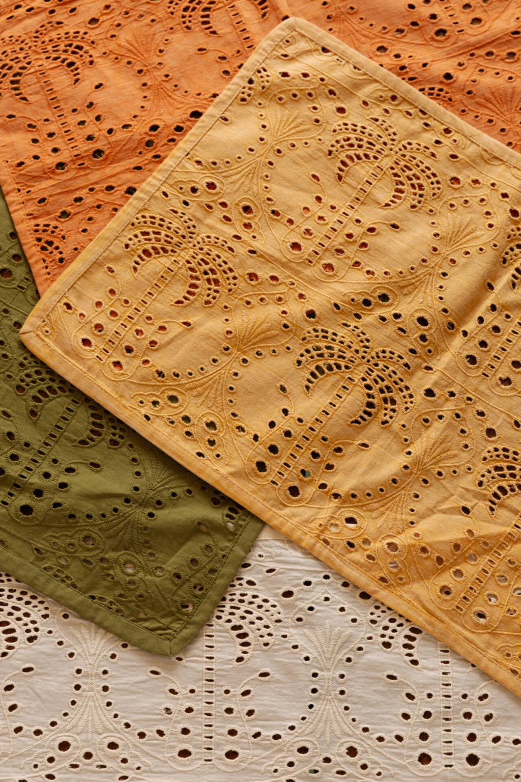 Dækkeserviet i 100% bomuld med broderie anglaise.