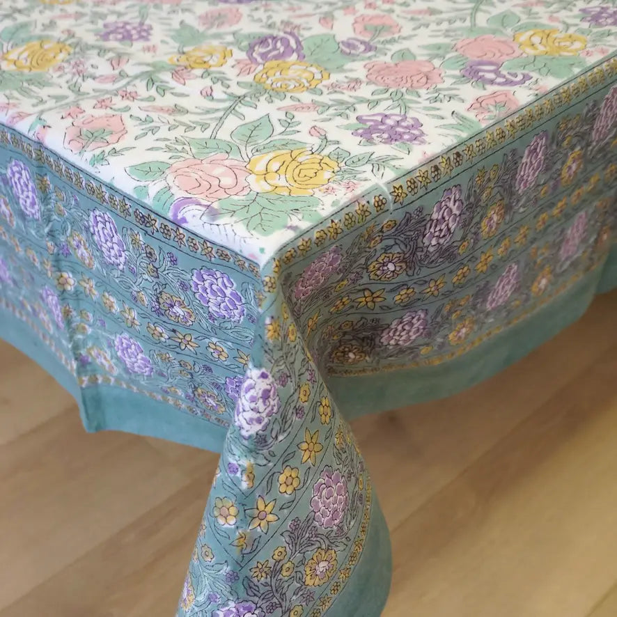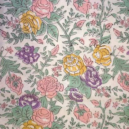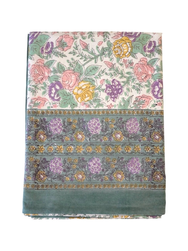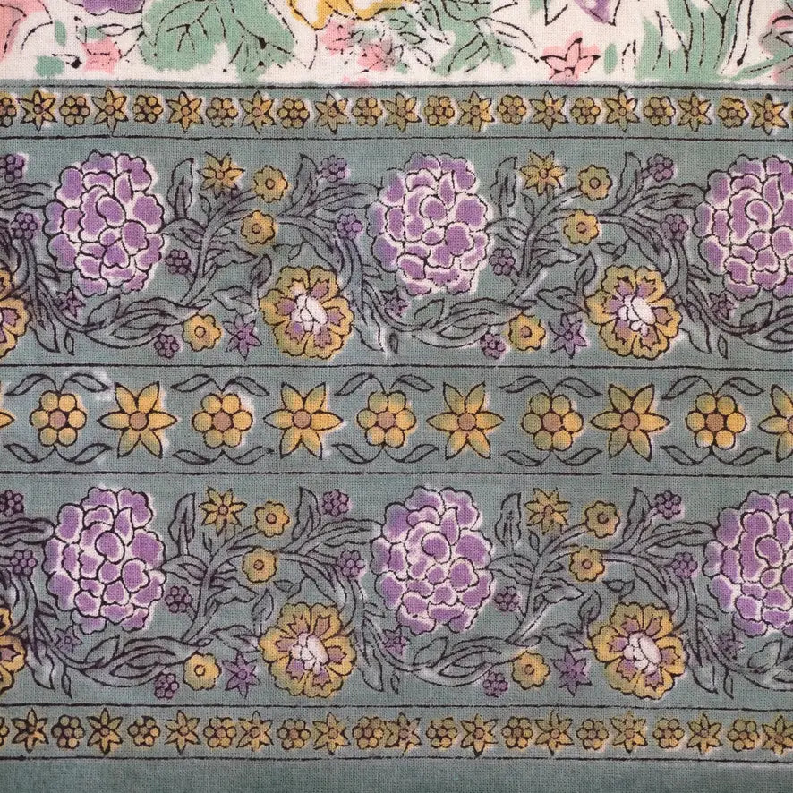Denne bomuldsdug er håndtrykt med en træklods i Indien.