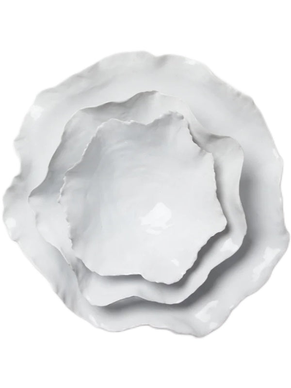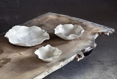 Disse fade er unikke og håndlavede med et råt, men elegant udseende, nogle synes de ligner en smuk østersskal. At dække bord med disse skaber anderledes og fantasifulde rammer server en dejlig salat, pasta eller suppe og du vil med garanti få kommentarer til de smukke retter