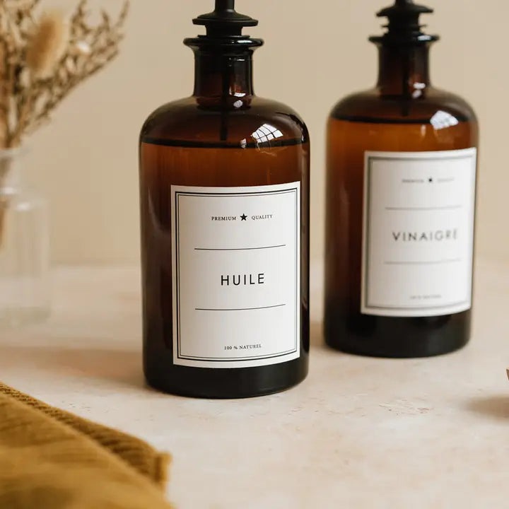 Takket være sin gule farvetone beskytter flasken produkter, der er følsomme over for sollys og garanterer optimal konservering. Vandtæt vaskbar mat finish etiket.