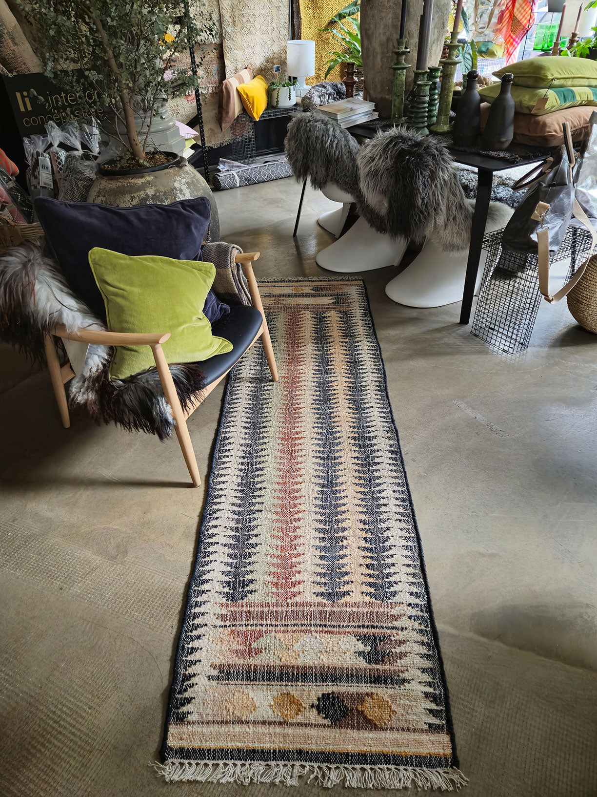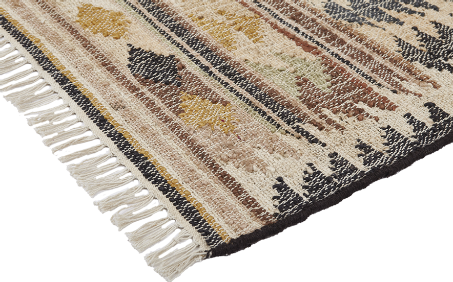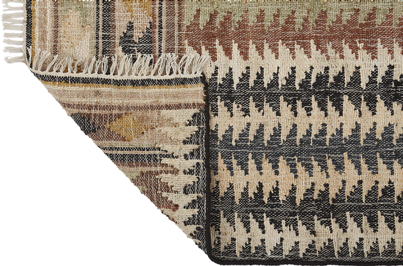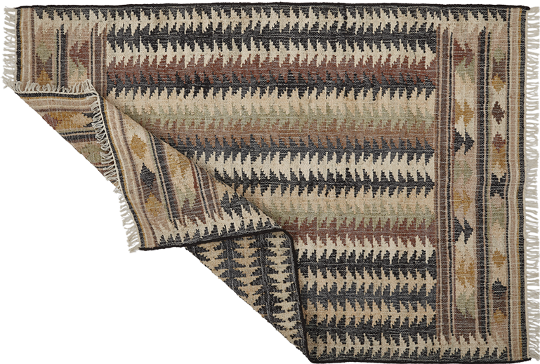 FIR jute tæppet kommer i et grafisk design, der minder om grantræer. De lidt mørkere farver i kombination med ufarvet jute skaber et lidt dramatisk look, men giver masser af varme. Jute er ikke kun smuk, den vokser også ekstremt hurtigt og er en naturlig råvare, der ikke skader miljøet, når den dyrkes. Vi bruger kun naturlige farver til vores jute tæpper.