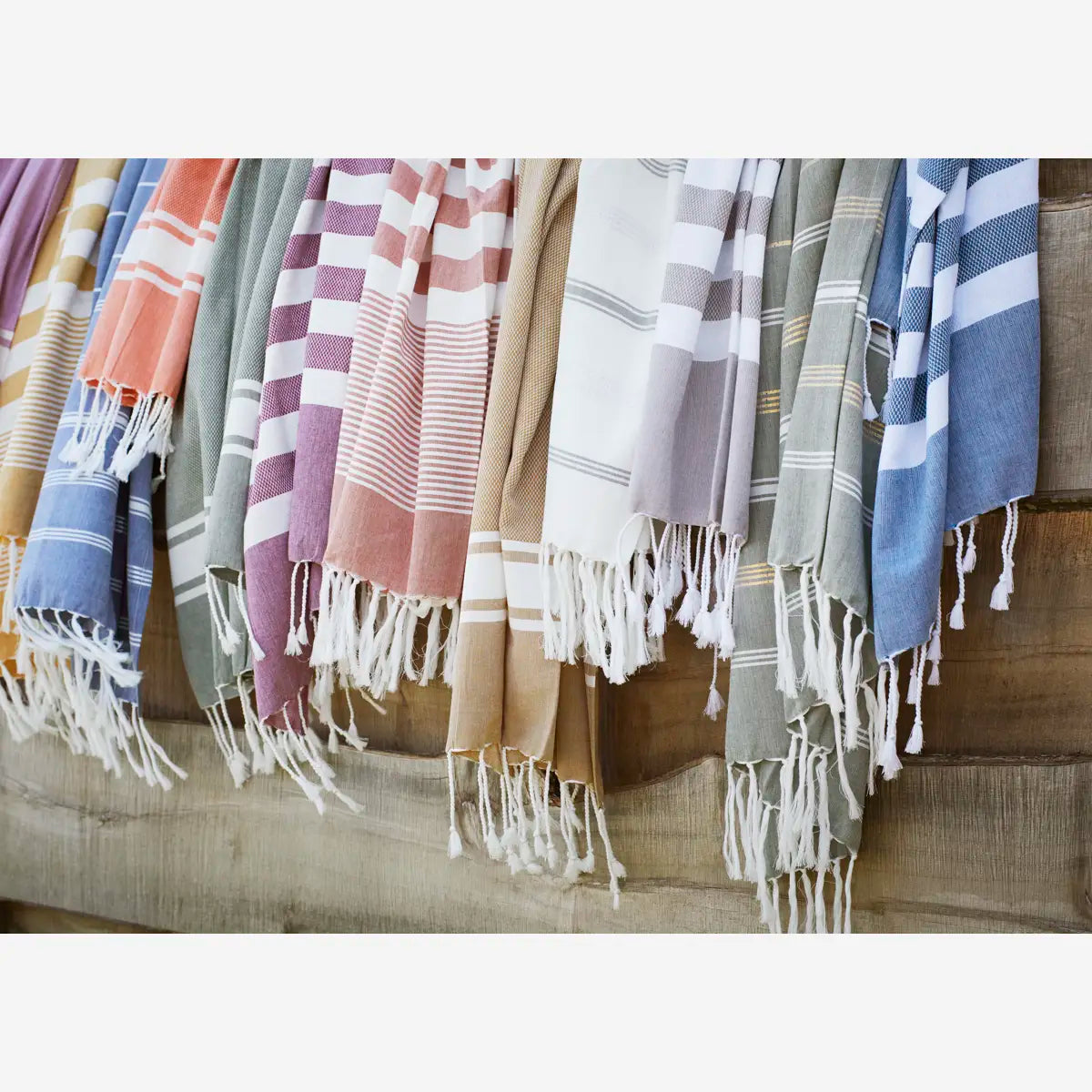 Håndklæde - Stribet Hammam (100x180 cm) Petrol/Hvid