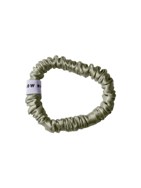 Mellow Minds silke scrunchie i beige er fremstillet af 100% mulberry silke. Med sin glatte overflade hverken slider, filtre, knækker eller giver den mærker i håret. Denne luksuriøse scrunchie er designet til at være skånsom mod håret og samtidig give et elegant touch til enhver frisure.