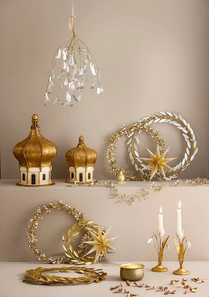 Eventyrlig mistelten i malet metal med perle-detaljer.