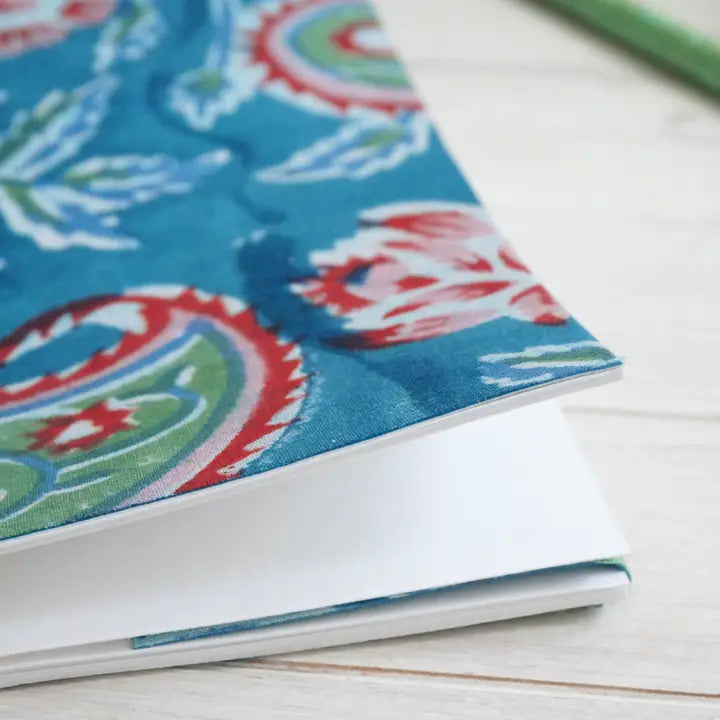 Den er dækket af stof trykt med en træblok på en håndværksmæssig måde i Indien. Den lukkes med et bomuldsslips.