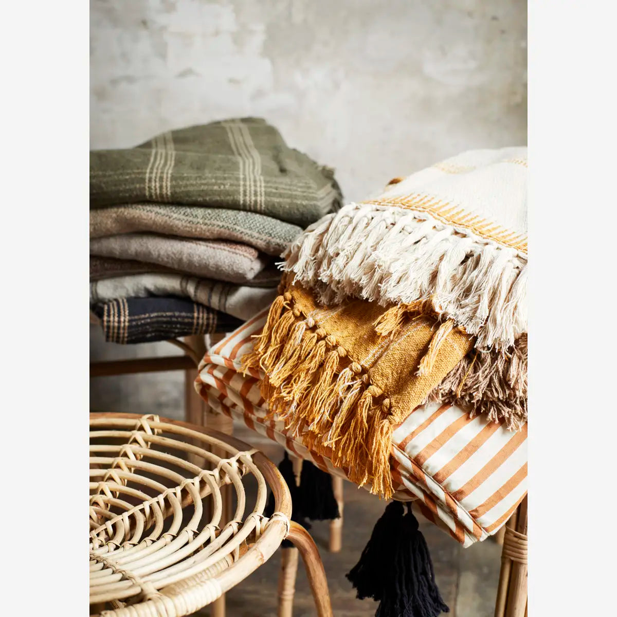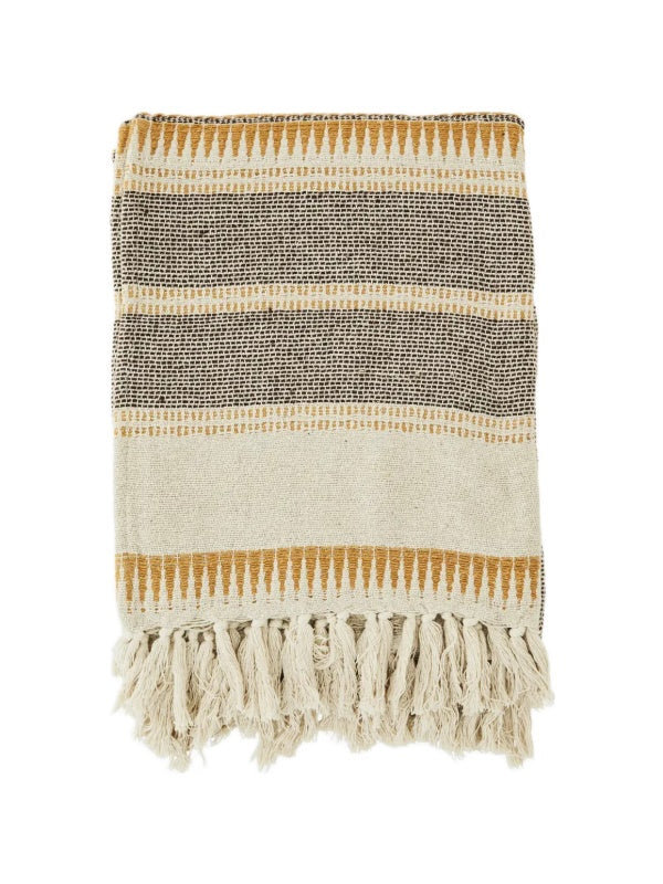 Plaid - Genanvendt Bomuld (125x150 cm), Ecru/Brun/Honning