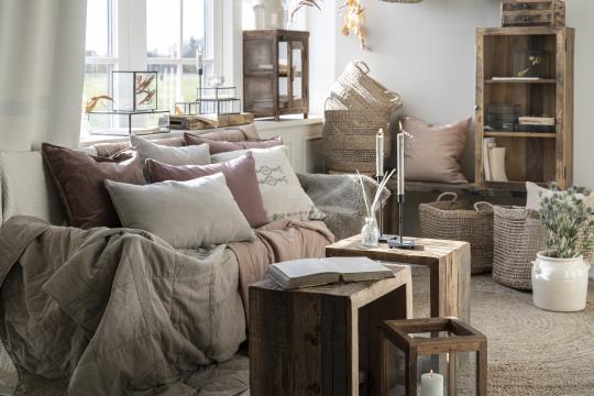 Pude - (50x50) Hør m/Fyld, Nutmeg