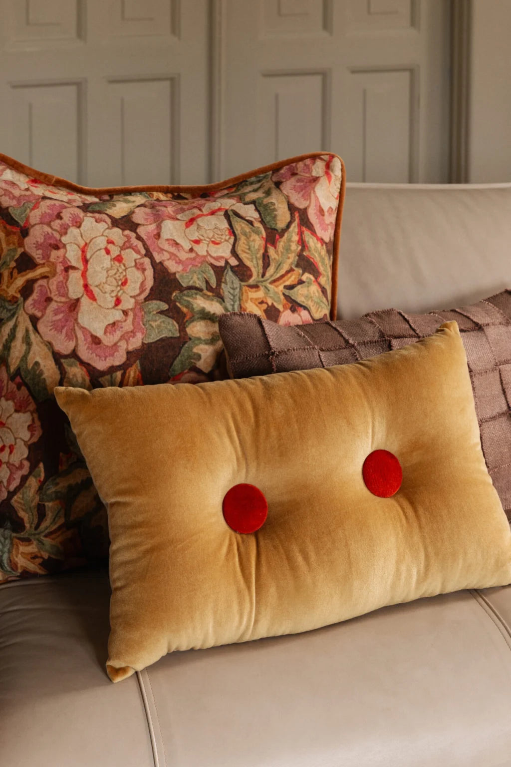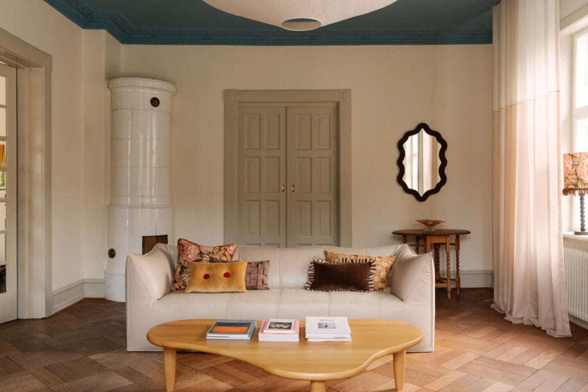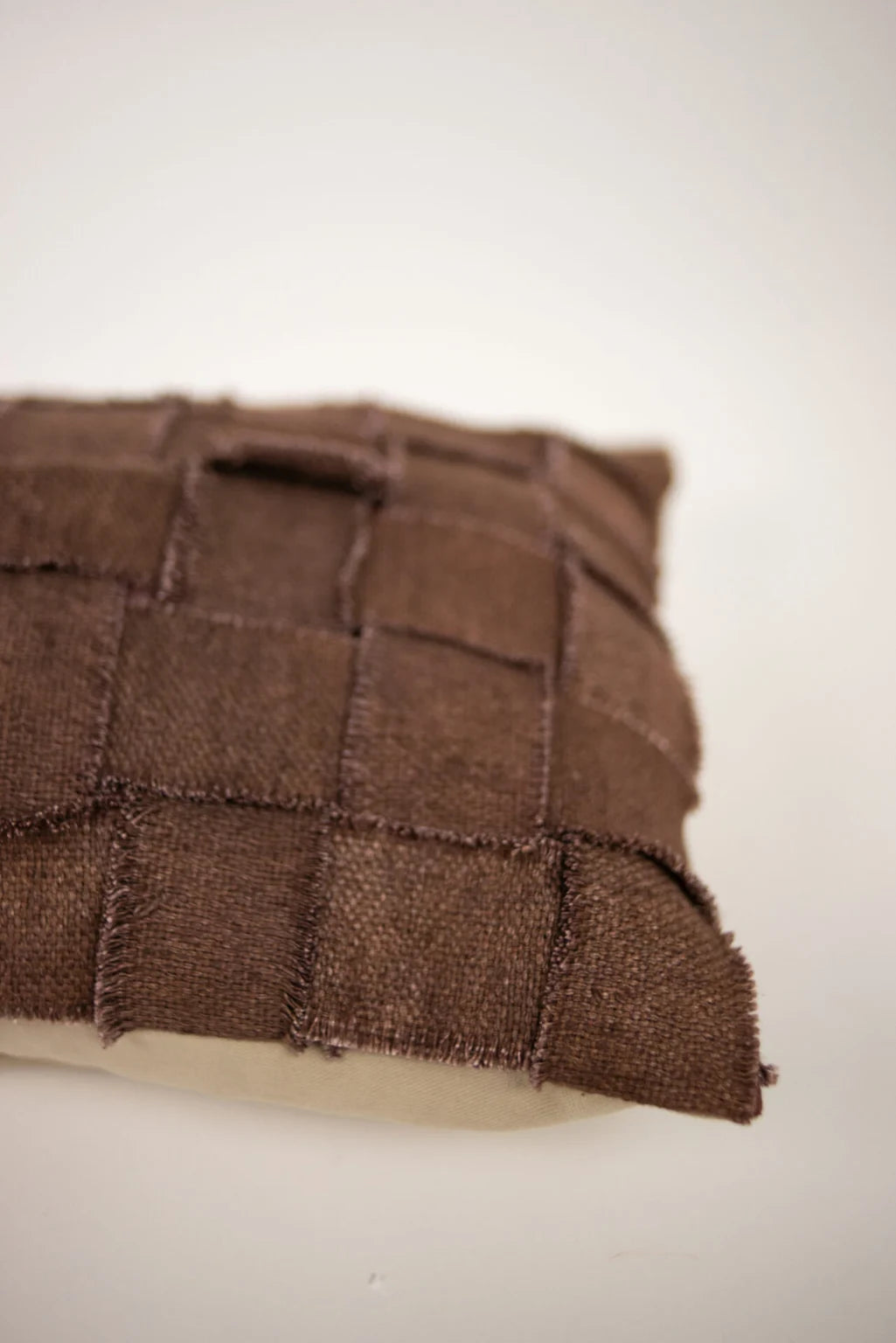 Pude i bomuld med et lærredsvævet stof, der skaber et grafisk, iøjnefaldende ternet mønster. Fås i fire farvemuligheder.