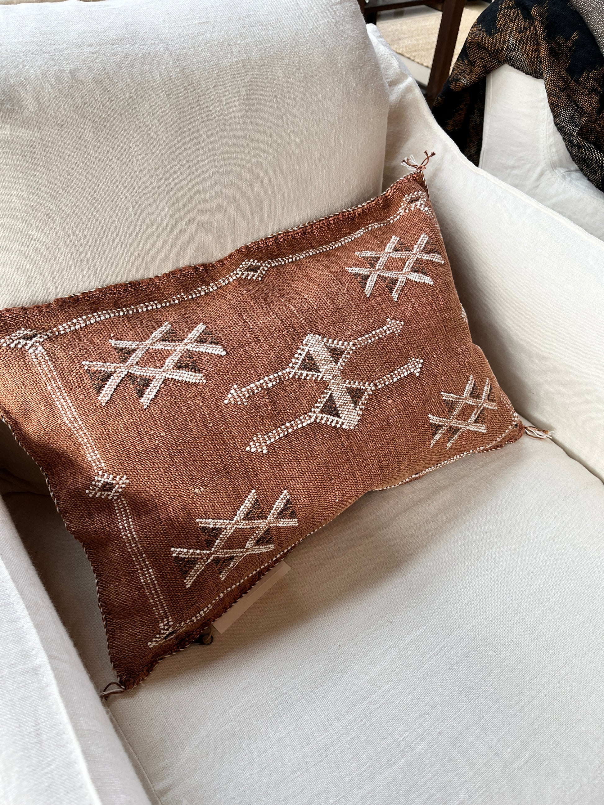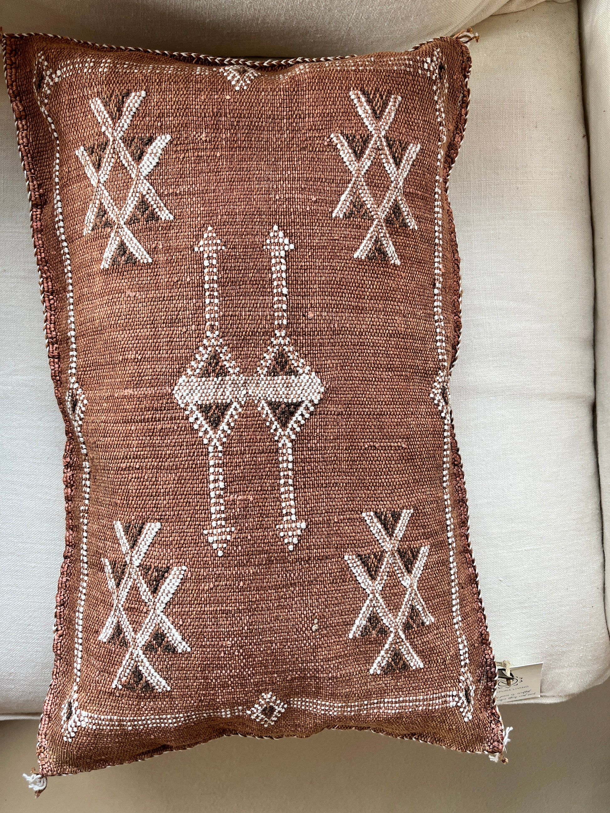 Det smukke Cactus pude er håndfarvet og håndsyet efter gamle traditioner i Marokkos berber stammer af kvinder, der arbejder sammen i et lille, lokalt kooperativ. Som en del af det traditionelle håndarbejde er puderne vævet med indfarvede mønstre, farver, symboler og ikoner til beskyttelse og god energi. Vi elsker de smukke puder for deres autentiske design og den varme berber energi, hver eneste pude er med til at sprede i vores moderne bolig-og livsstil.