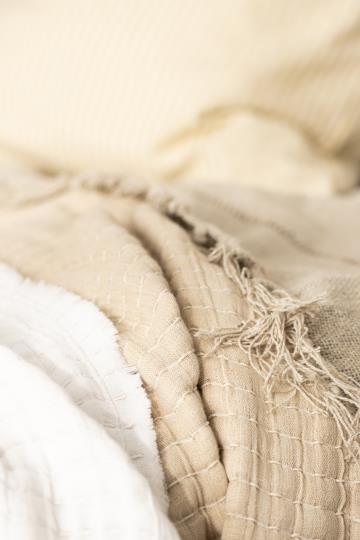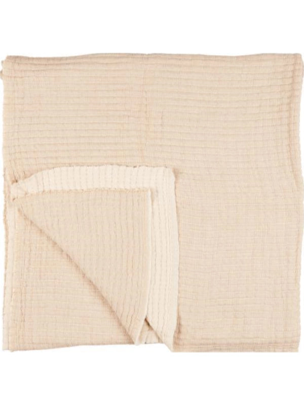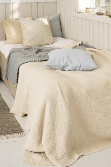 Sengetæppe enkelt ribbet natur forside/off white bagside m/kantha-stikninger