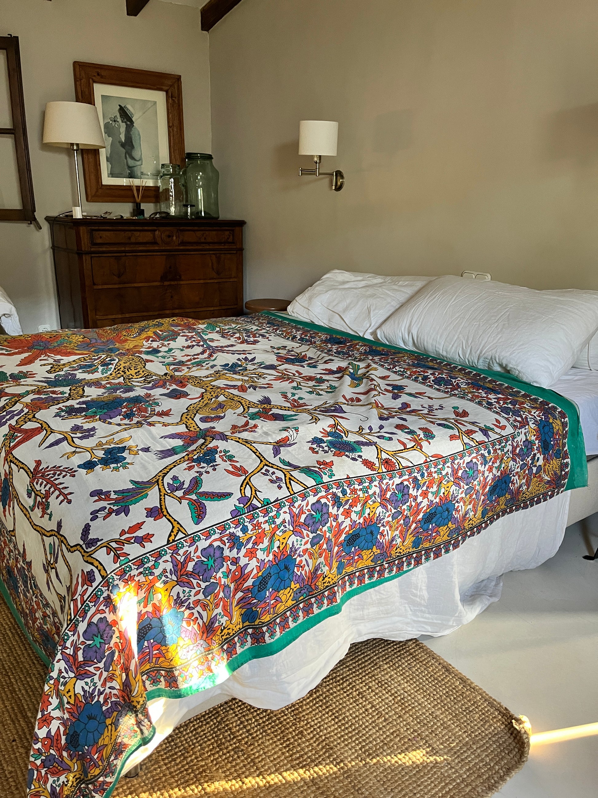 Smukt vintage sengetæppe fra Spanien i 100% bomuld.