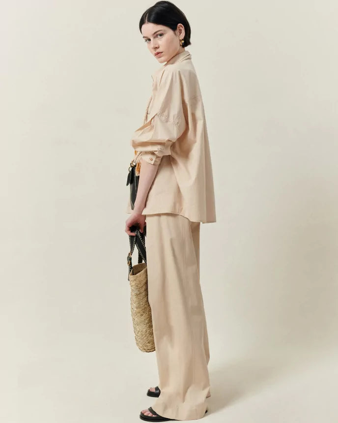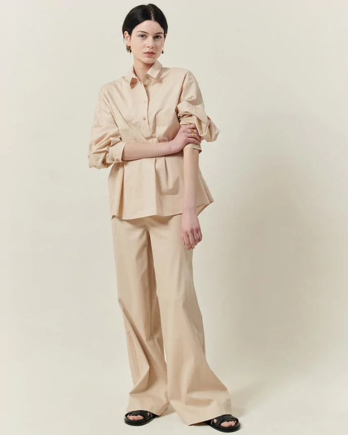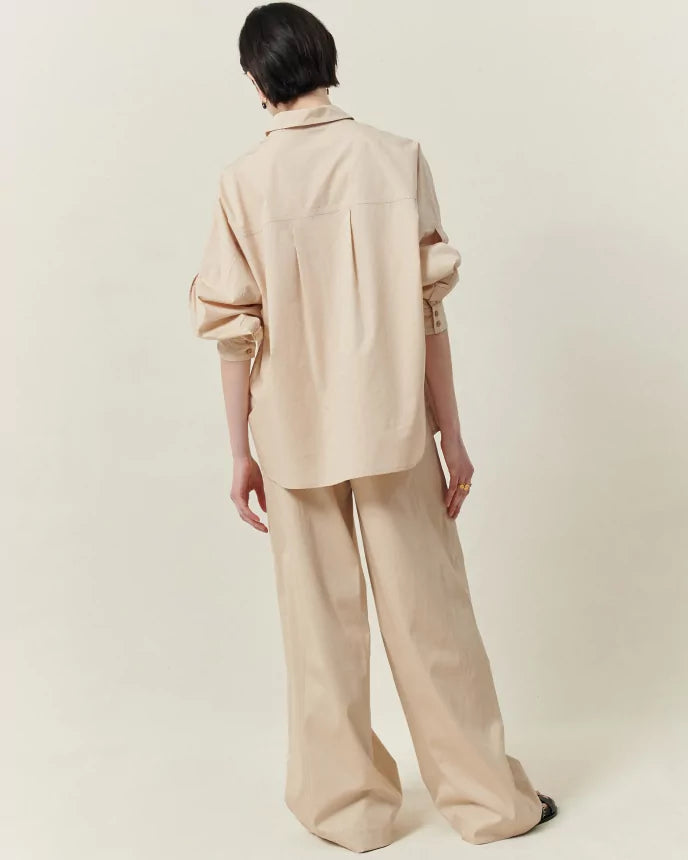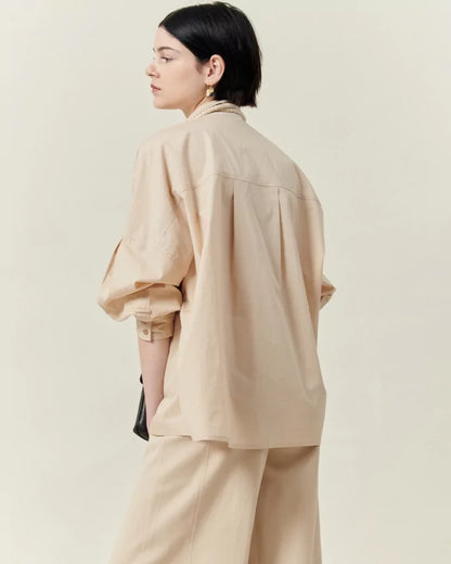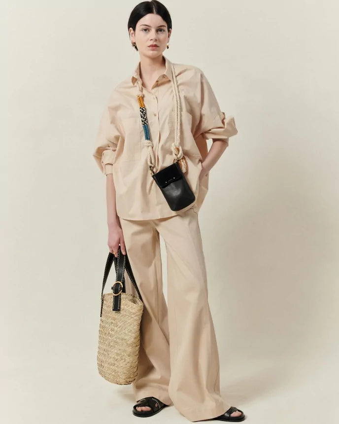 Skjorte med bred polo-fane med påsatte lommer, skjorte i kompakt poplin vævet i Spanien.
