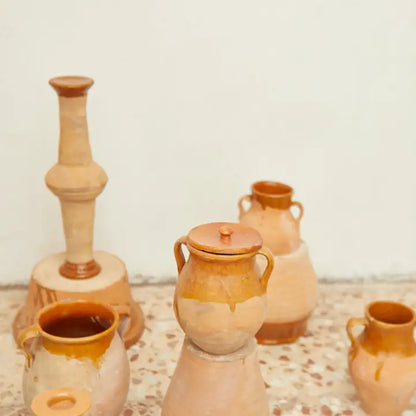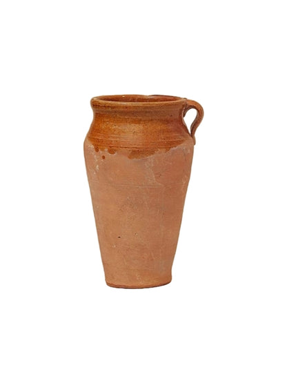 Vase med lille hank og cirkulær form. Det er lavet af håndlavet ler, så det kan have naturlige ufuldkommenheder og variere i forhold til billederne.
